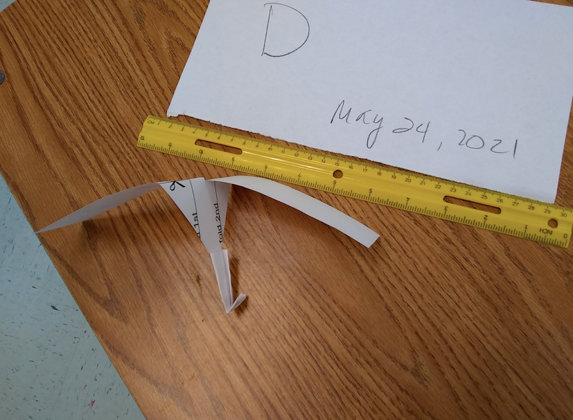 Typically, some students will be able to create a helicopter that descends very slowly–probably with a design that tends to have longer blades and a shorter tail. This slow-descending model tends to be unpredictable and can veer off course during any trial. A longer-tailed and shorter-bladed paper helicopter will descend predictable straight down, but sacrifice time aloft to do so. Helicopters with more than two blades are sometimes explored as well.